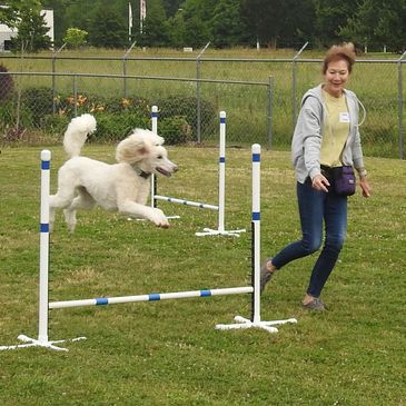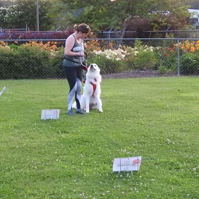 Build the bond with your dog by navigating a course with signs for different behaviors including various turns, serpentines, sidesteps, heeling at various speeds (walking, running!), and more.