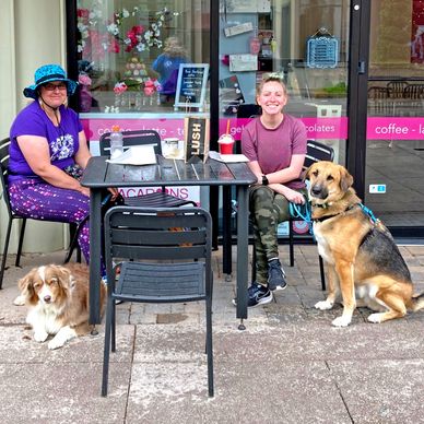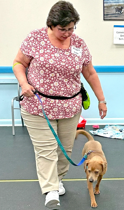 Dogs continue working on basic manners: sit, down, wait, come, "leave it", and loose leash walking. We also focus on friendly greetings - sitting calmly when people approach instead of jumping up!